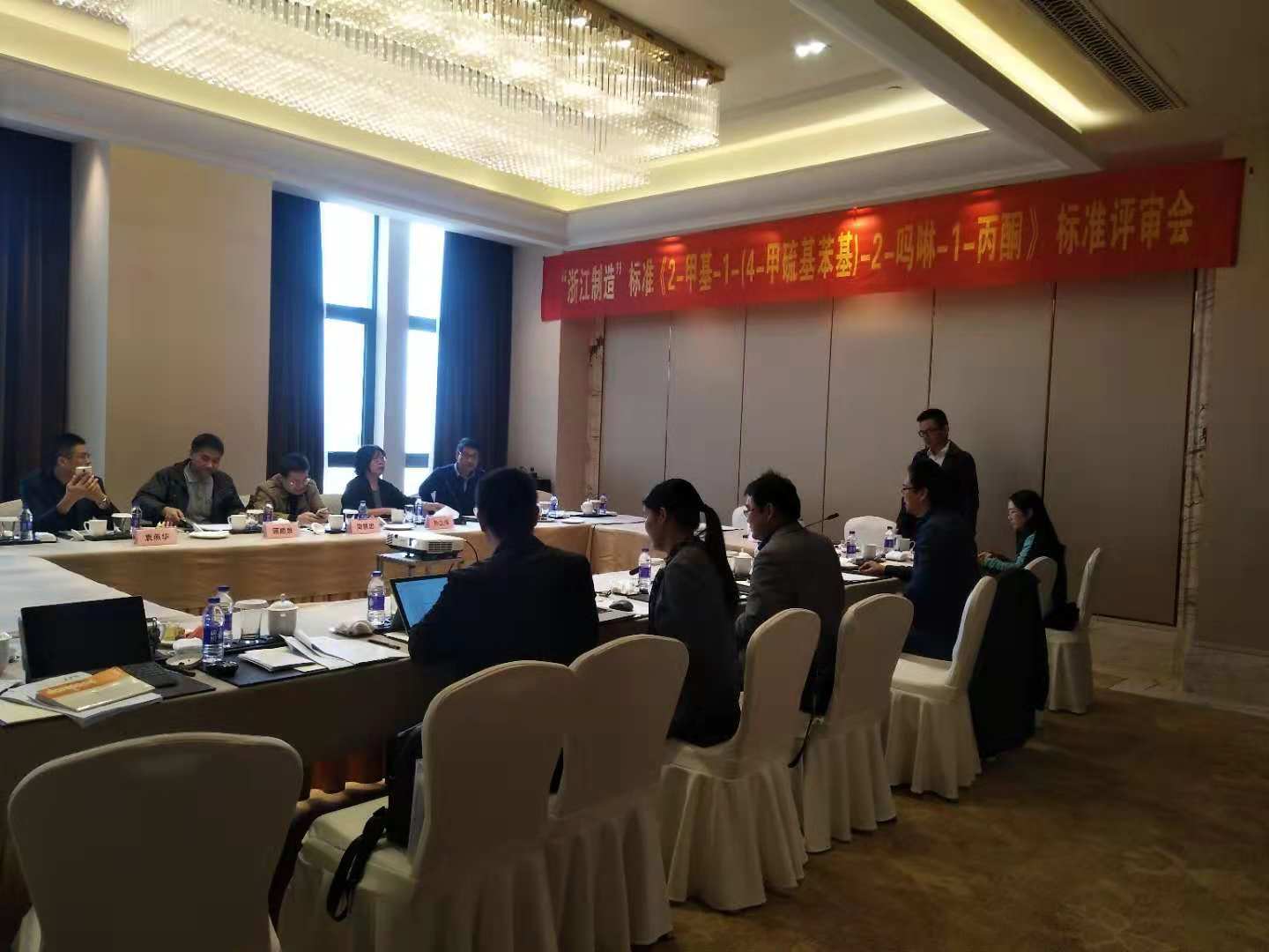 10月31日上午,由浙江省品牌建設聯合會組織、紹興質檢院牽頭、浙江揚帆新材料股份有限公司為主起草的《2-甲基-1-4-甲硫基苯基)-2-嗎啉基-1-丙酮》“浙江制造”團體標準評審會在上虞開元大酒店三樓暢言廳順利召開。上虞質監局杜錫勇院長、王建剛所長,專家組成員孫衛萍主任、 周慧忠院長、揚帆新材上虞基地總經理張永彬等參加了此次評審會議。