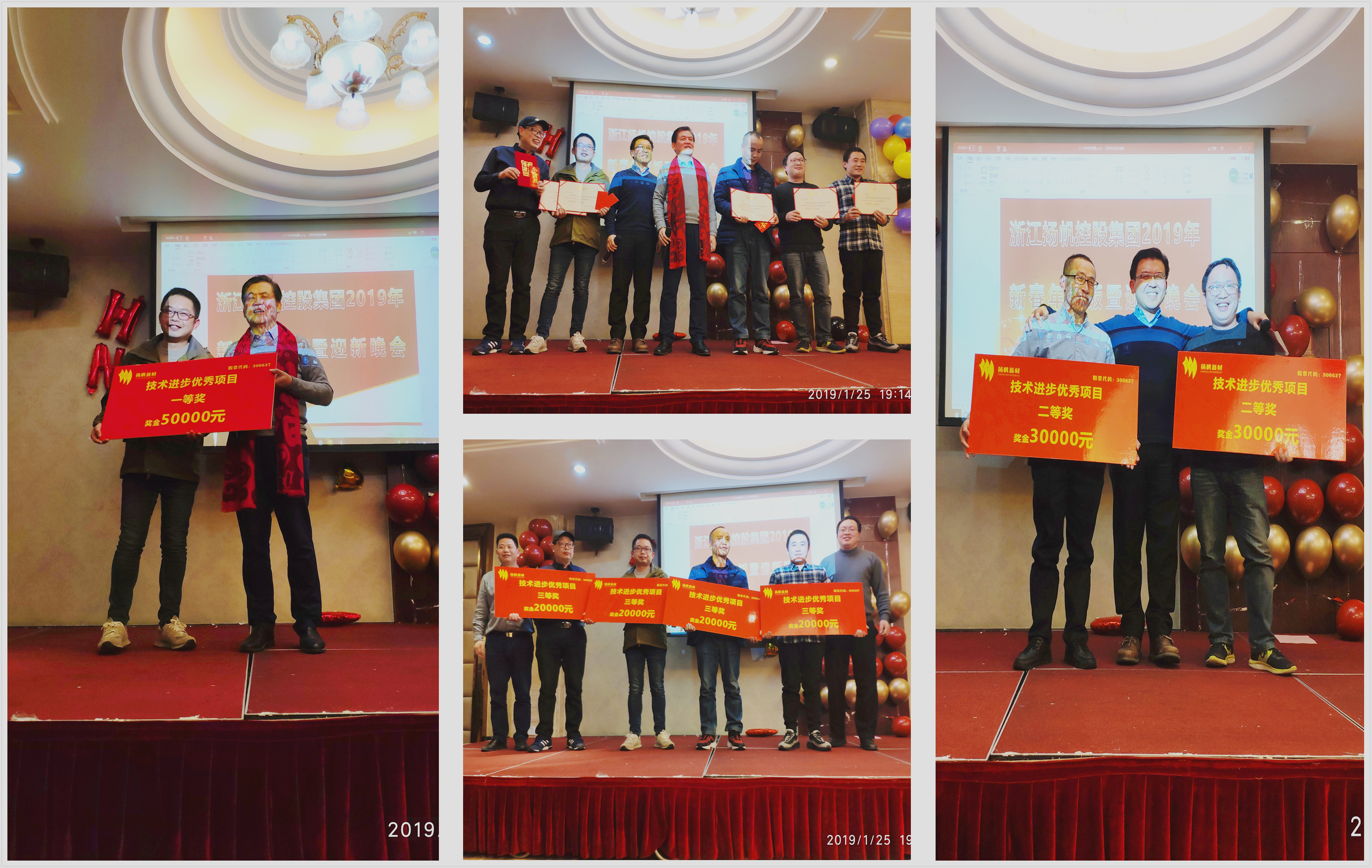2019年1月25日,浙江揚帆新材料股份有限公司(以下簡稱“揚帆新材”、“公司”)技術委員會在公司杭州年會上舉行了隆重的頒獎典禮,浙江揚帆控股集團有限公司(以下簡稱“控股集團”)董事長、公司董事樊培仁,公司董事長樊彬,總經理、技術委員會組長李耀土,技術總監、技術委員會秘書長吳紅輝等參與典禮并頒獎。