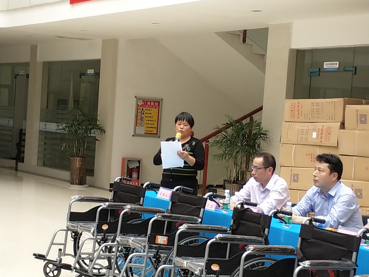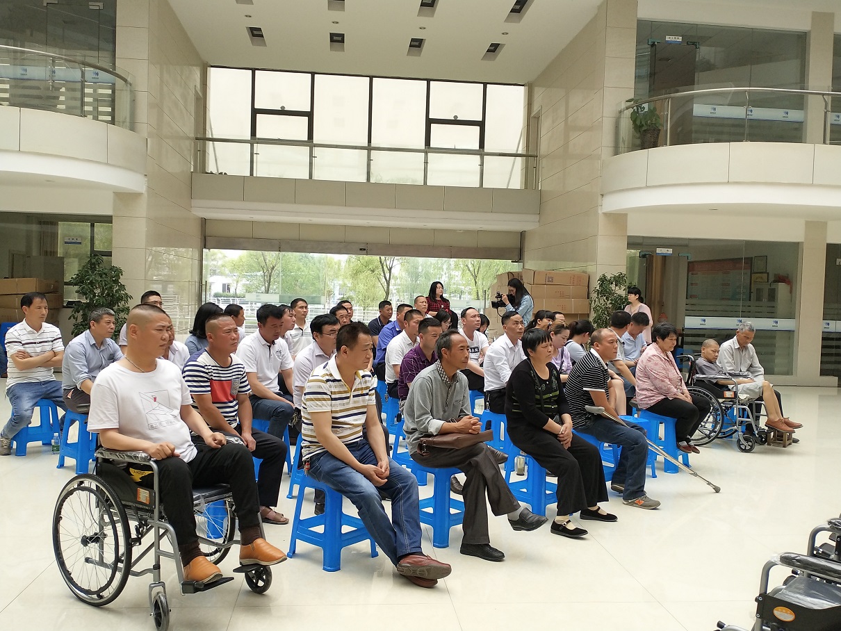 儀式最后陳總代表公司向殘聯宗理事長移交了100輛輪椅,殘聯按事先分配計劃,當場向19個鄉鎮分發了全部輪椅?;顒尤〉脠A滿成功!
