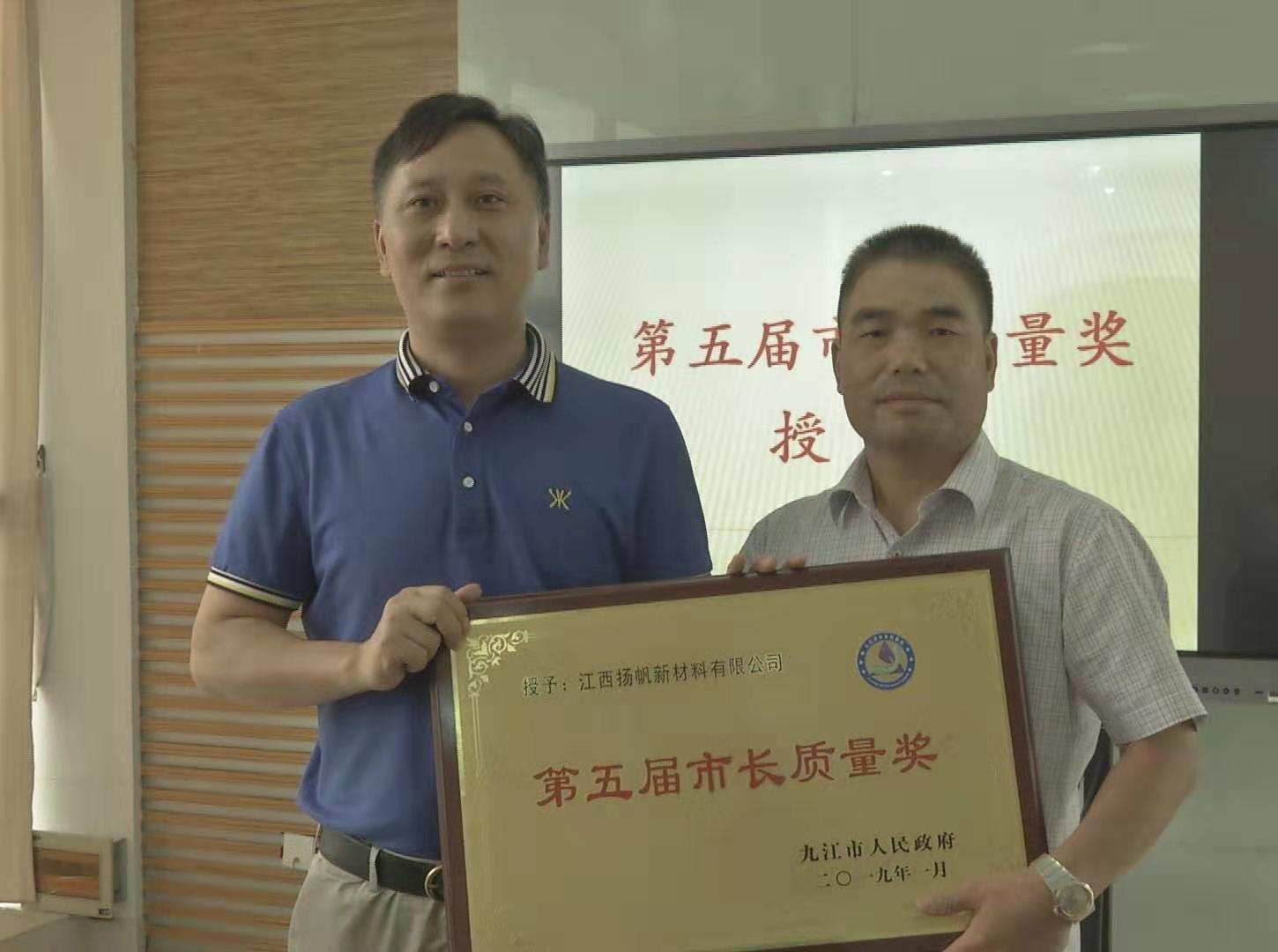 8月26日,九江市、彭澤縣兩級市場監督管理工作人員專程來到江西揚帆,為企業頒發2018年第五屆“市長質量獎”。我公司是2018年度彭澤縣唯一一家“市長質量獎”獲獎單位。