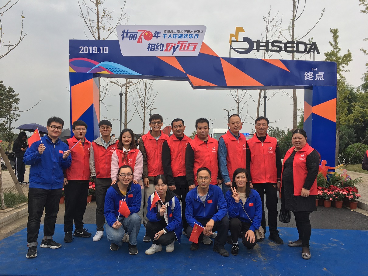 1027日,在杭州灣上虞經濟技術開發區舉辦的主題為“壯麗70年,相約歡樂行”的環湖歡樂行活動中,揚帆新材積極響應號召,選派5名員工作為企業代表參與環湖活動,另有9名員工作為志愿者提供后勤保障,在終點站服務各參與人員。