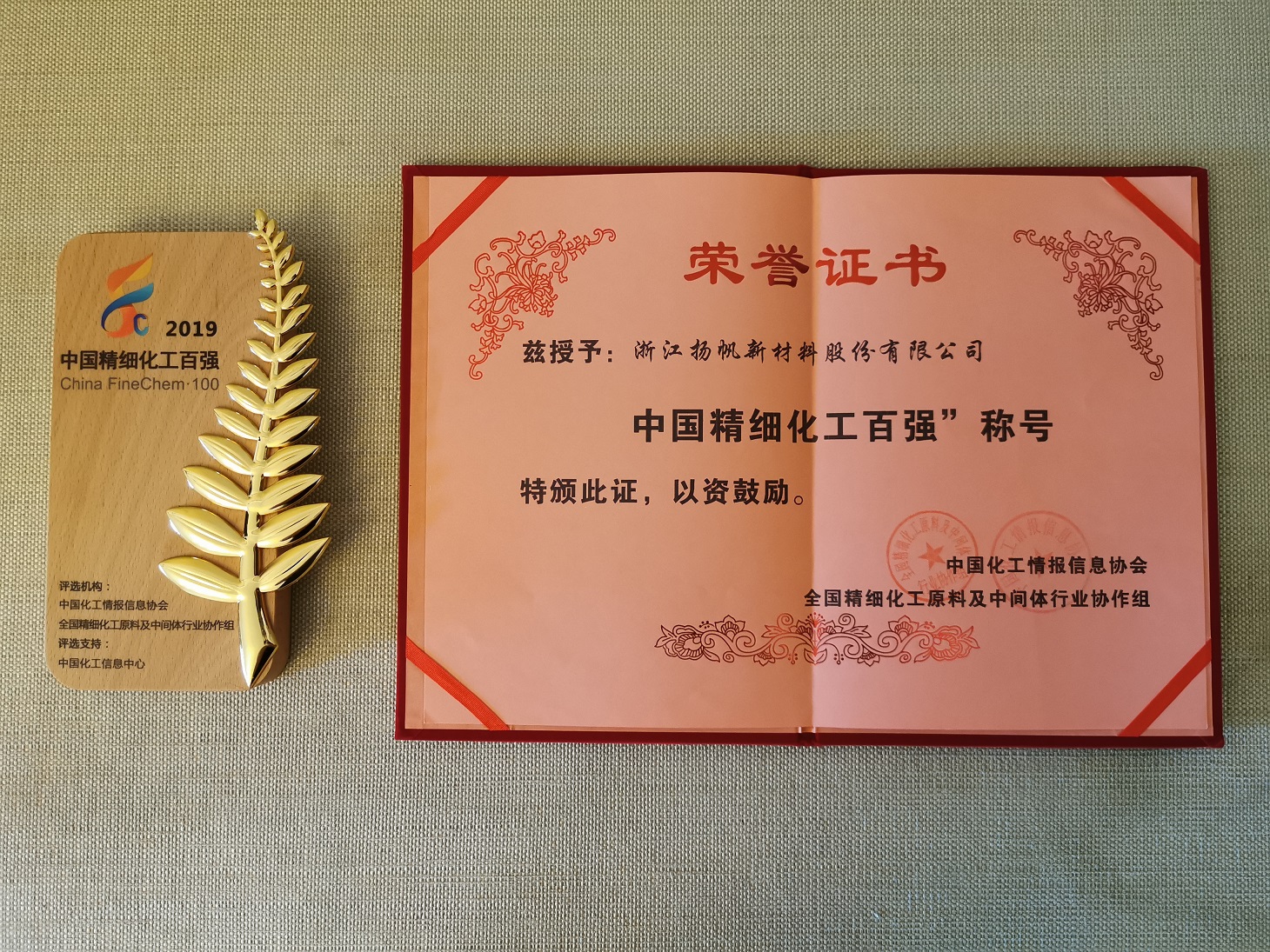 11月28日, “第十九屆國際精細化工原料及中間體(鐵山港)峰會暨2019中國精細化工百強發(fā)布會”在廣西北海市召開,會上隆重發(fā)布“2019中國精細化工百強”榜單,揚帆新材憑借數(shù)十年的行業(yè)積淀,綠色發(fā)展的經(jīng)營理念、銳意進取的創(chuàng)新精神以及成己惠人的社會責任感再度名列榜單。
