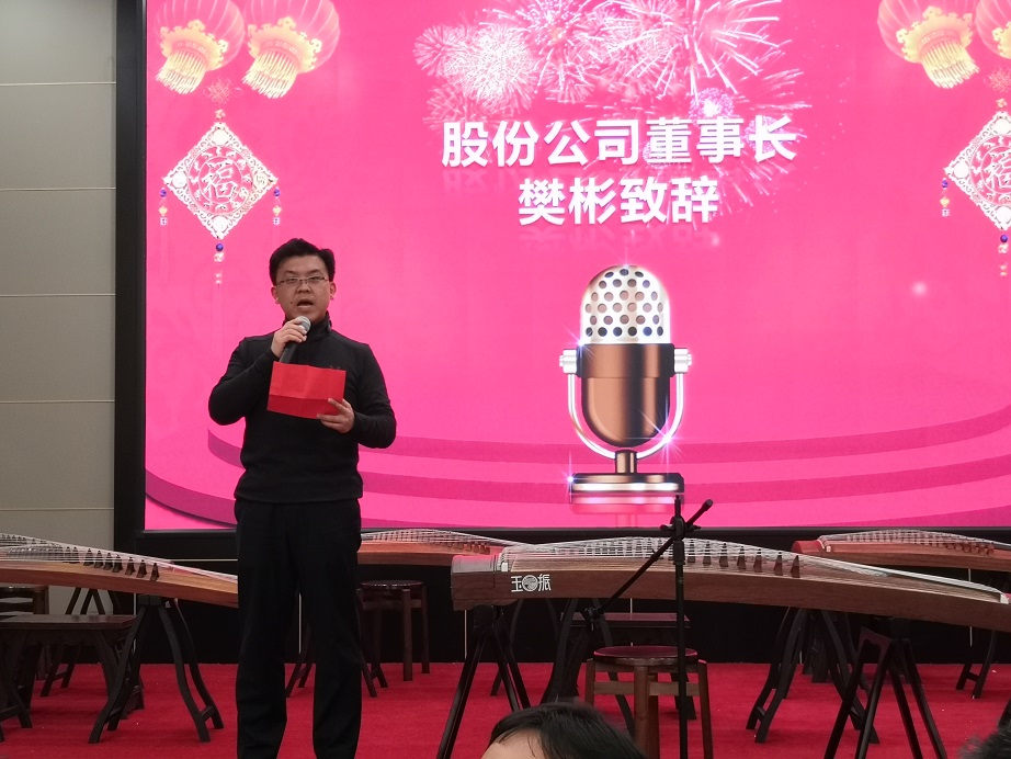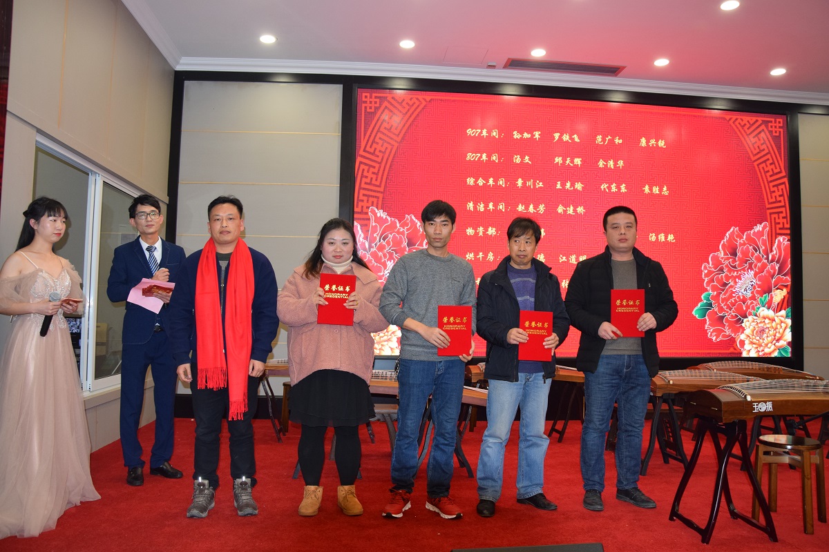 2019年,公司成了古箏隊,本次晚會是古箏的首次公開演出。一曲《笑傲江湖》和一曲《我和我的祖國》,高山流水,余音繞梁,博得了現場陣陣掌聲。