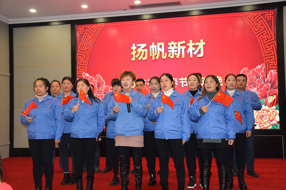 在公司控股股東浙江揚帆控股集團董事長樊培仁的帶領下,在場高管及全體揚帆新材本部、壽爾福貿易員工大合唱《我和我的祖國》,將全場氣氛帶向高潮!