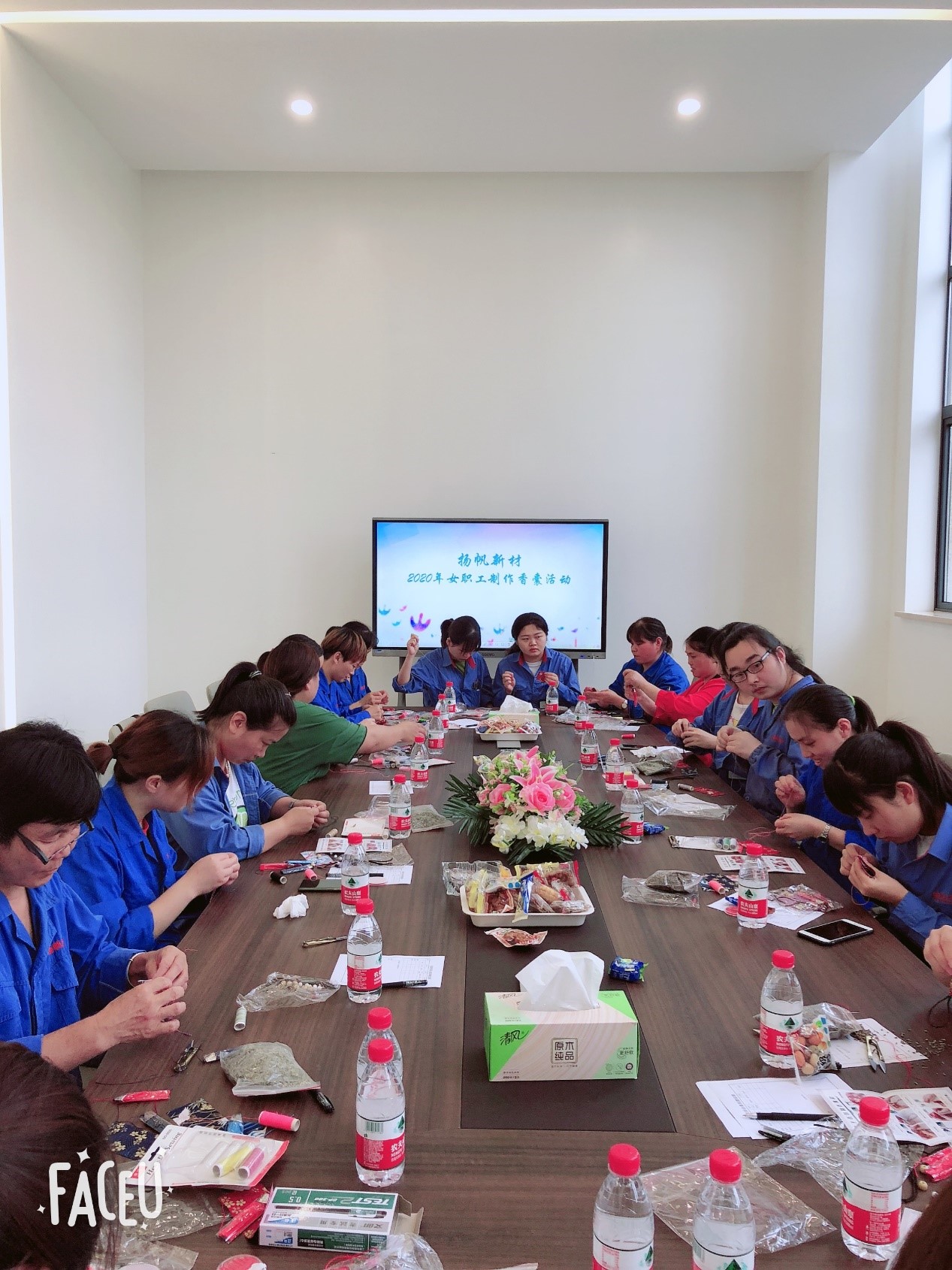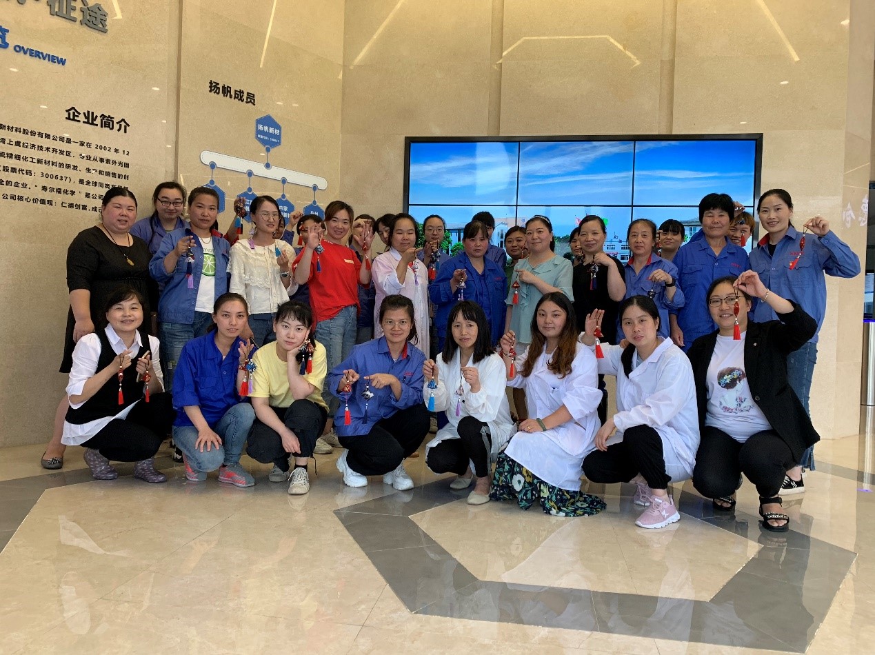 6月20日下午,揚帆新材上虞生產基地的活動室里熱鬧非凡,由公司工會舉辦的女職工“巧手做香囊 歡樂迎端午”活動吸引了來自各部門各車間30多名女員工報名參加。