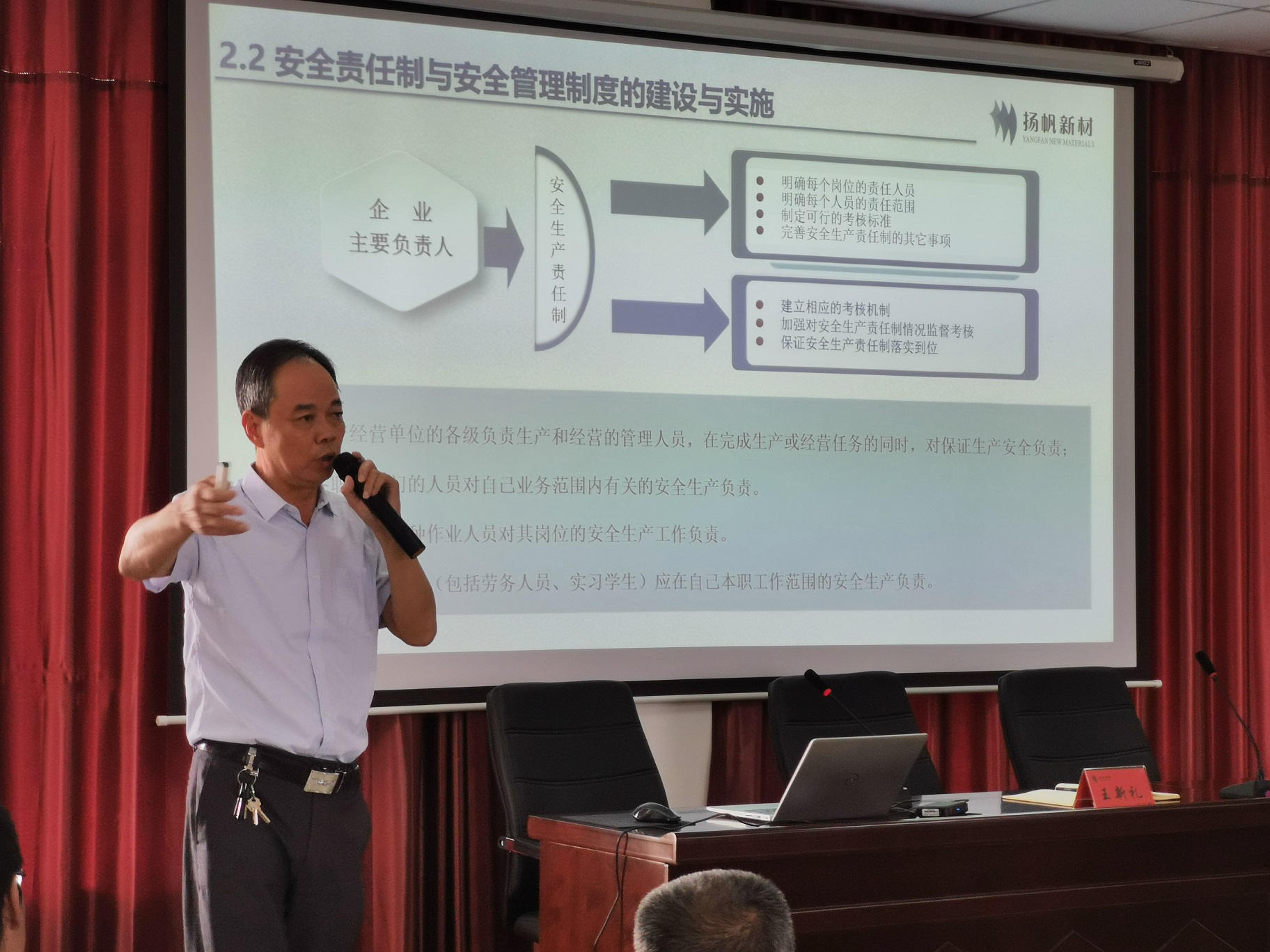 公司分管安全工作的副總經(jīng)理郭峰在會上為全體與會員工梳理了我國現(xiàn)行安全生產(chǎn)相關(guān)的法律法規(guī),并在安全生產(chǎn)常識、職業(yè)危害與職業(yè)病、用電安全、消防安全、工傷認(rèn)定、隱患排查等多個方面,結(jié)合實(shí)際案例為大家作了深度講解,進(jìn)一步提高了與會員工的安全生產(chǎn)意識和安全保護(hù)技能。