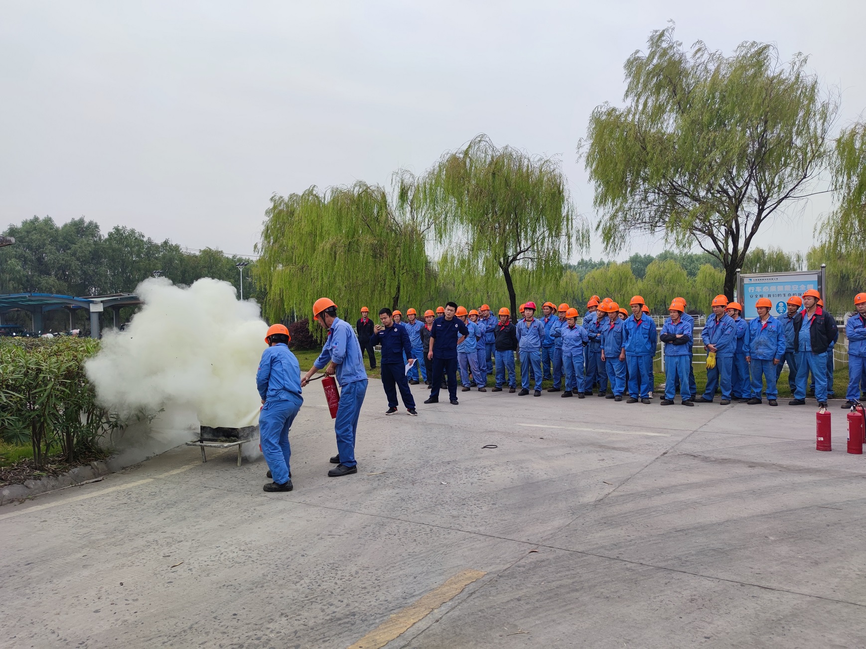 參加本次培訓考核的近50名員工,個個嚴肅認真,一絲不茍地按照規范要求進行操作,不僅掌握了滅火操作方法,并全部一次性地通過了現場考核。