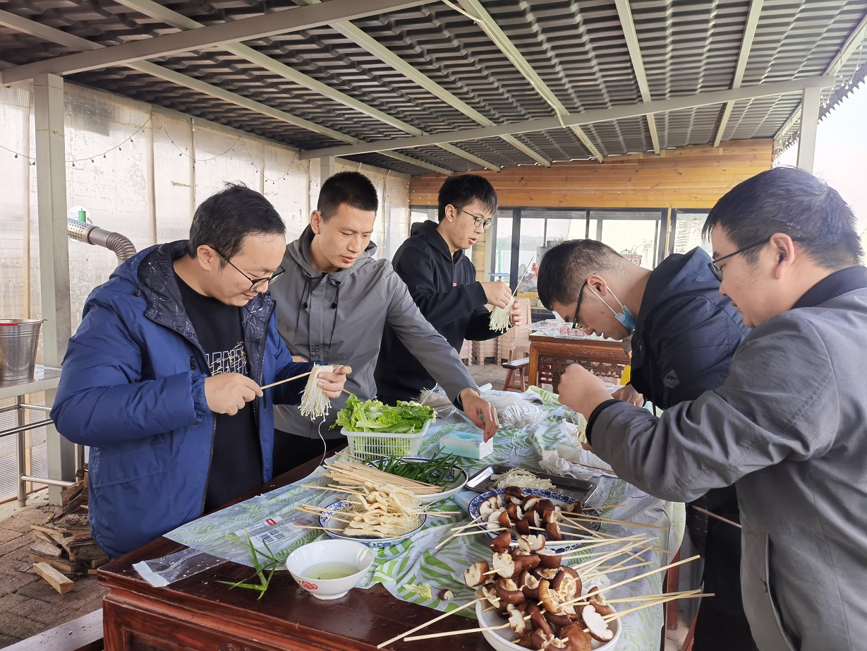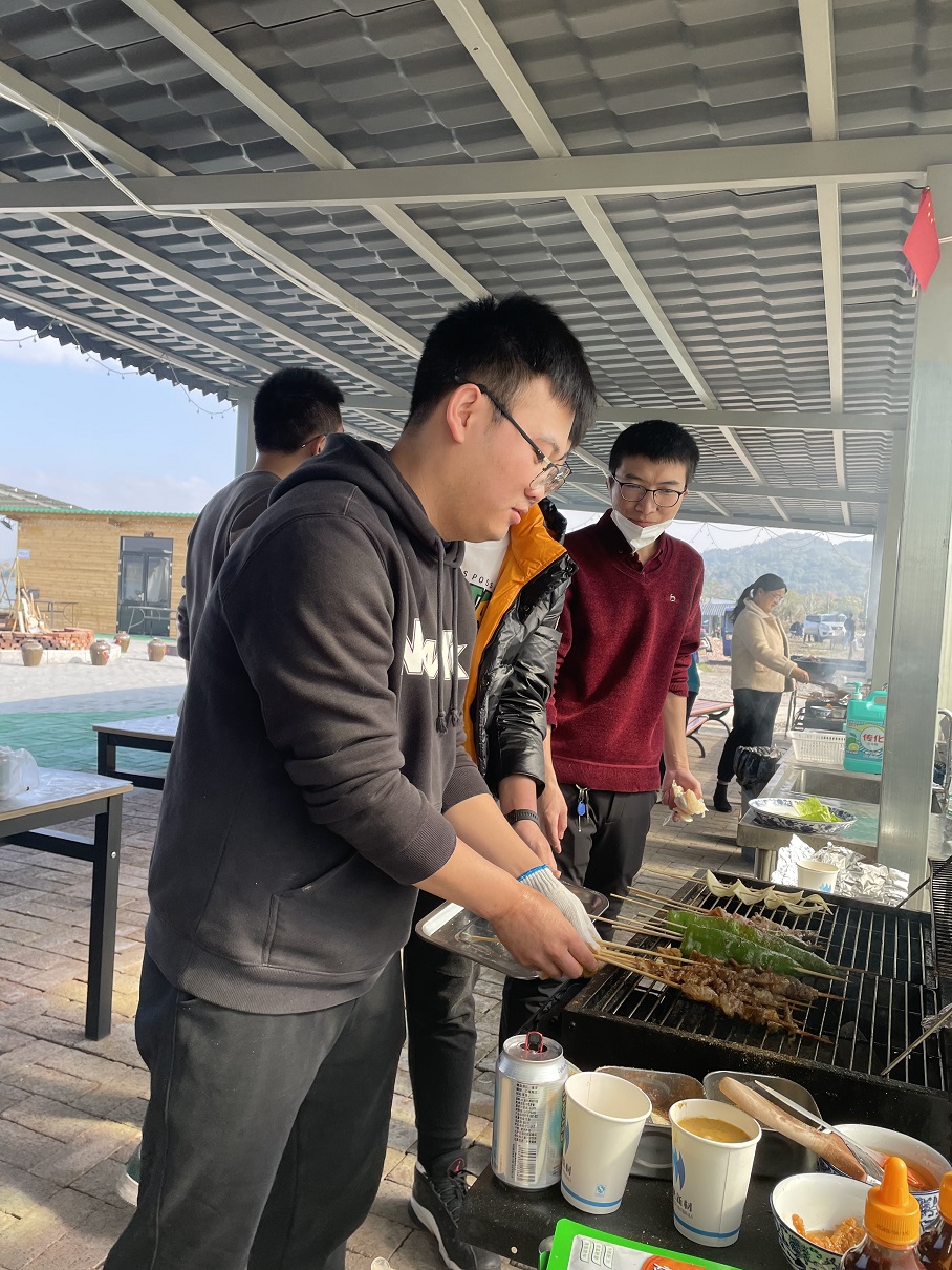 游戲結(jié)束后,我們進(jìn)行了“燒烤”和“土灶燒菜”活動(dòng)。通過剛才游戲環(huán)節(jié)的影響,每個(gè)人都變得更加積極,分工也更加明確,生火、洗菜、切菜、穿串、烤肉、燒菜,有條不紊,忙而不亂。自娛自樂中,還不時(shí)有人為大家高歌幾曲,氣氛十分融洽。