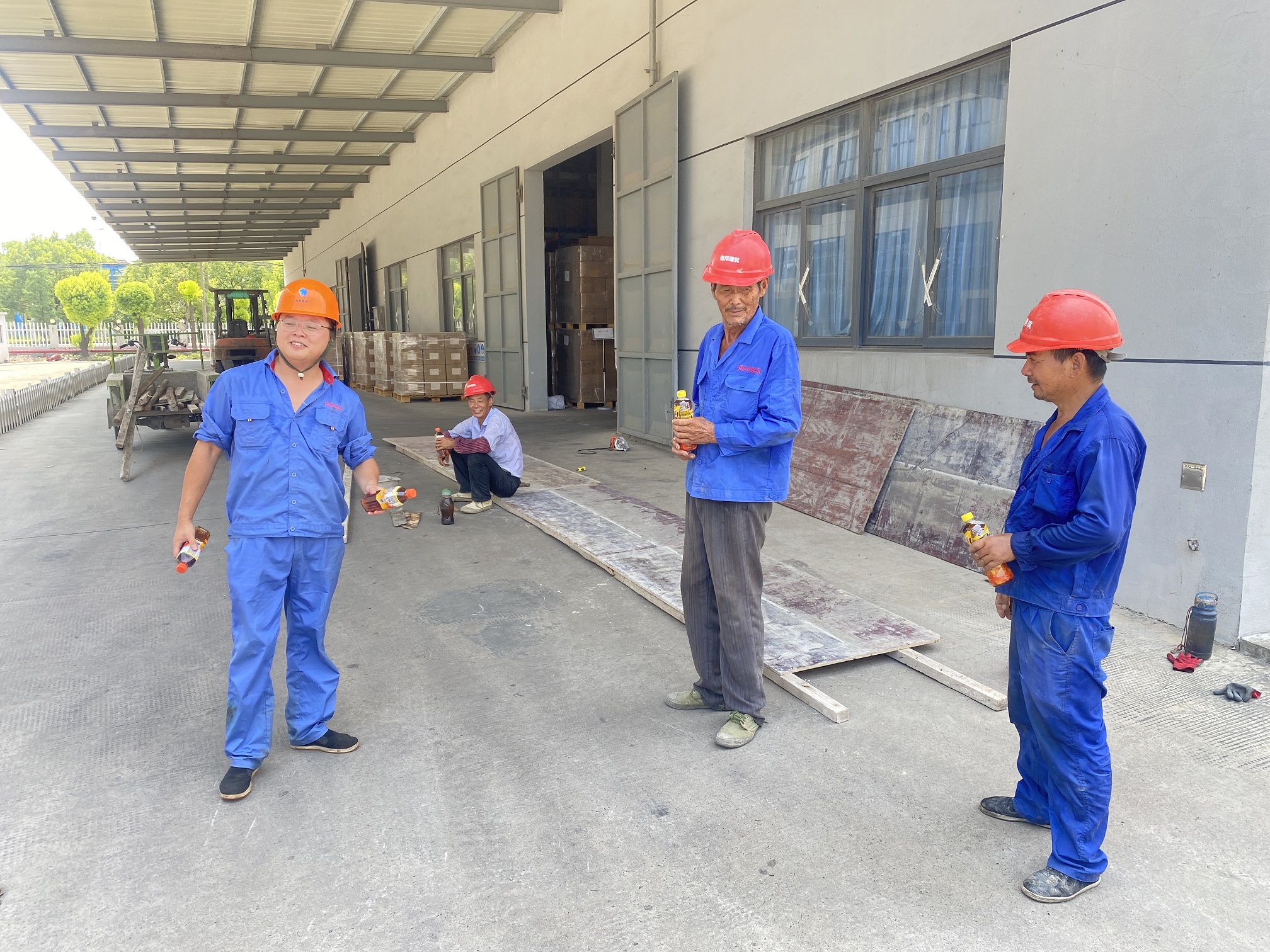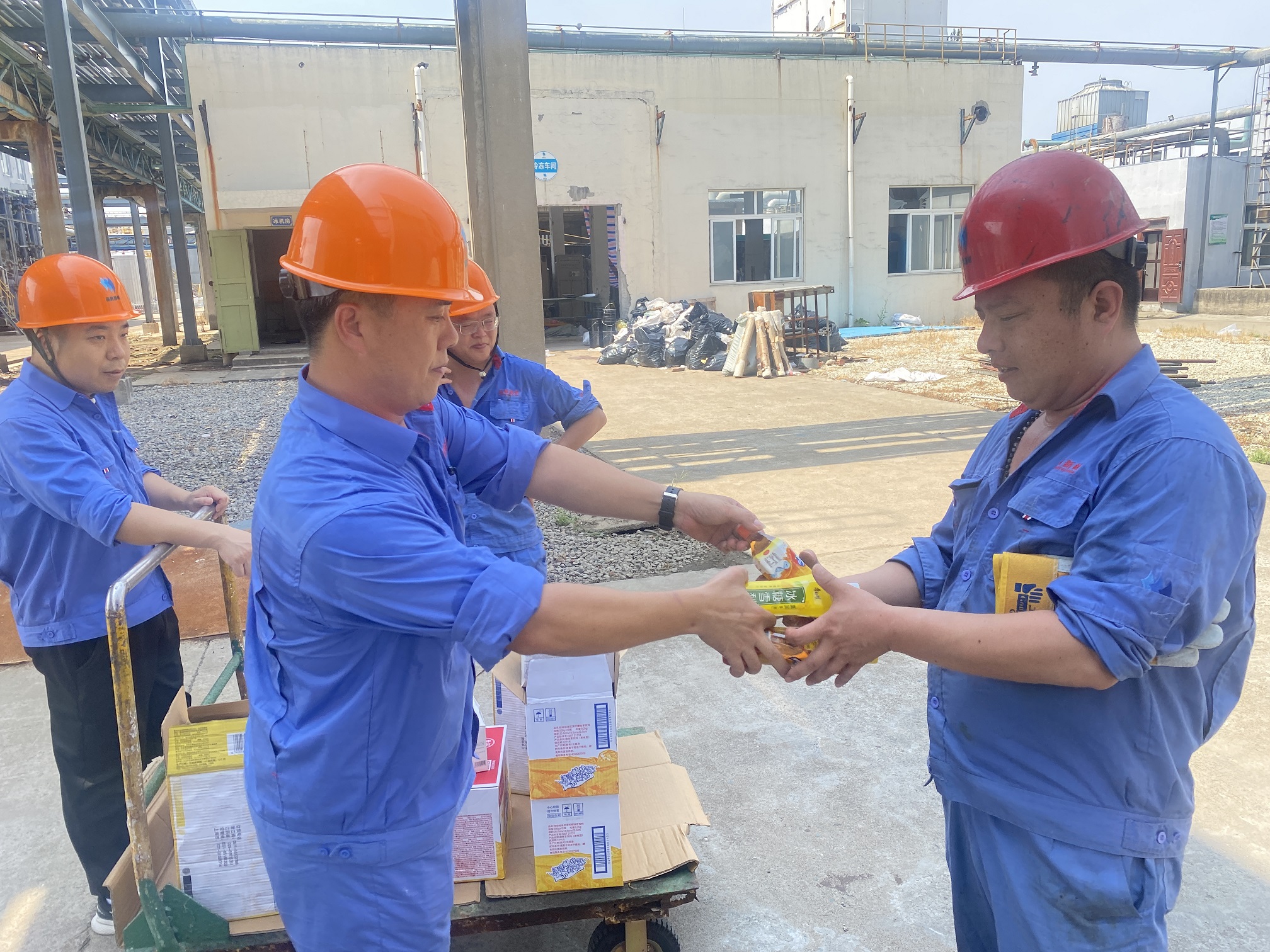7月26日下午,揚帆新材上虞生產(chǎn)基地工會開展送清涼活動。工會委員李琴帶隊,在各車間主任的陪同下向各車間和倉庫奮戰(zhàn)在一線的職工送上“清涼”冷飲。