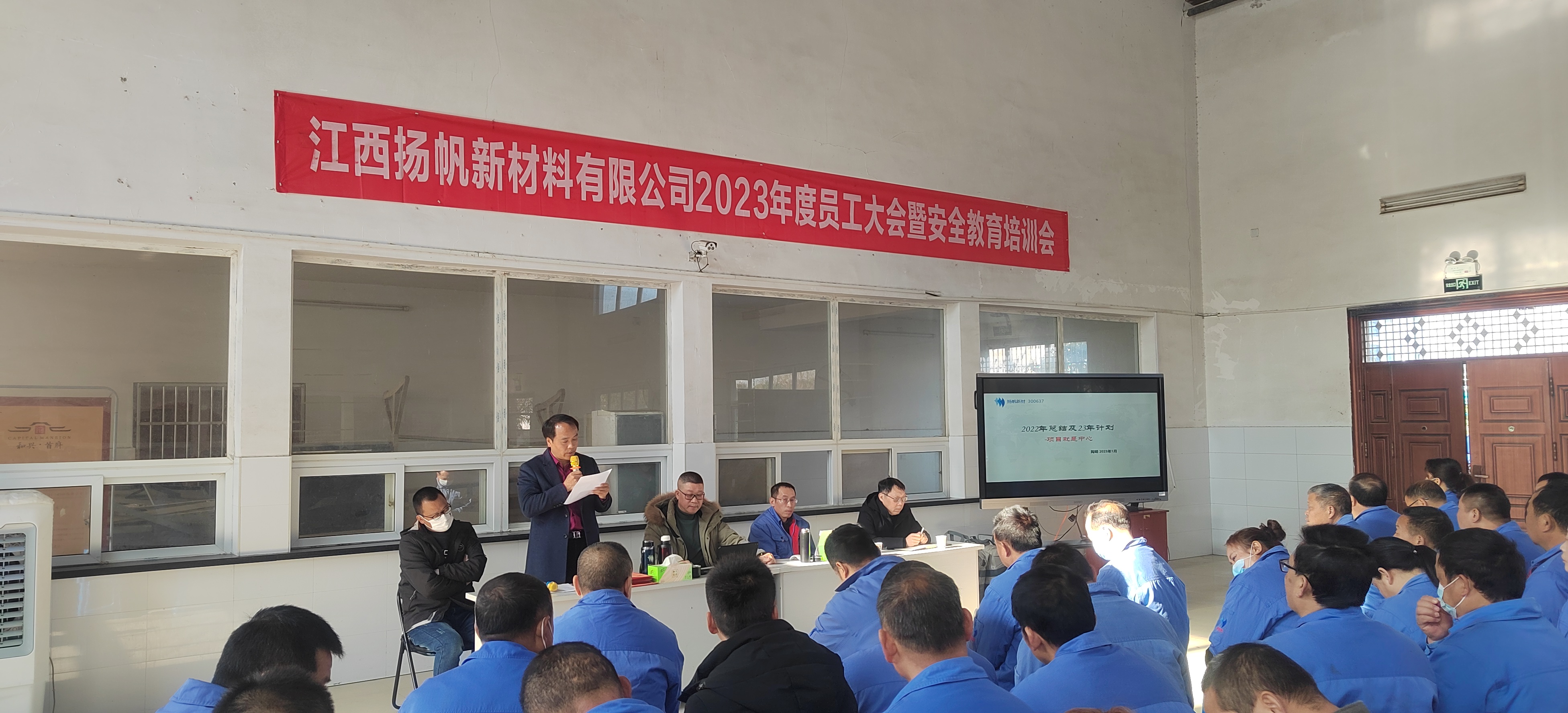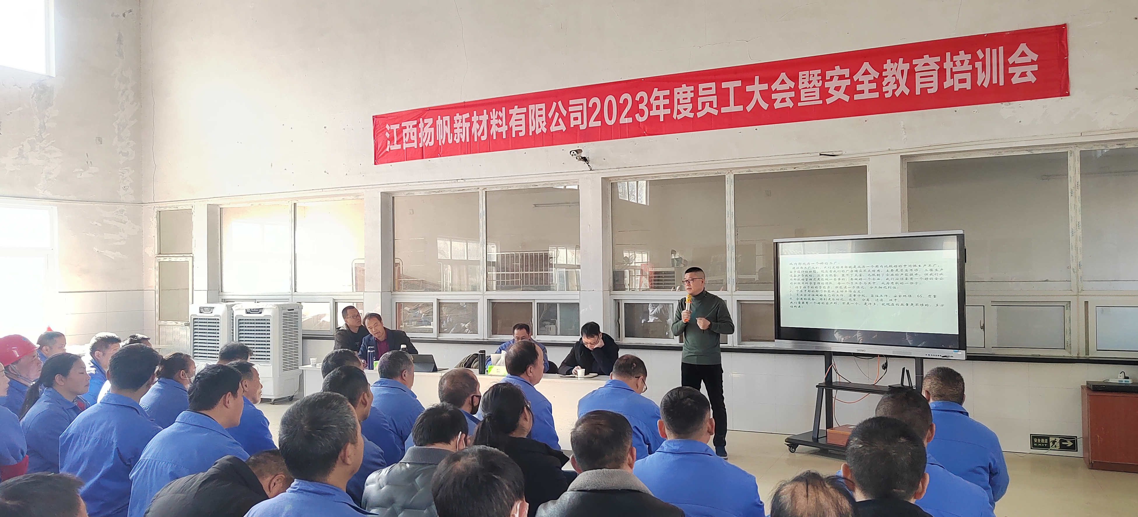 131日,江西揚帆召開2023年度員工大會暨安全教育培訓會。揚帆新材副總裁陶明、江西揚帆總經理余立志及經營班子成員和全體員工參加了此次會議。