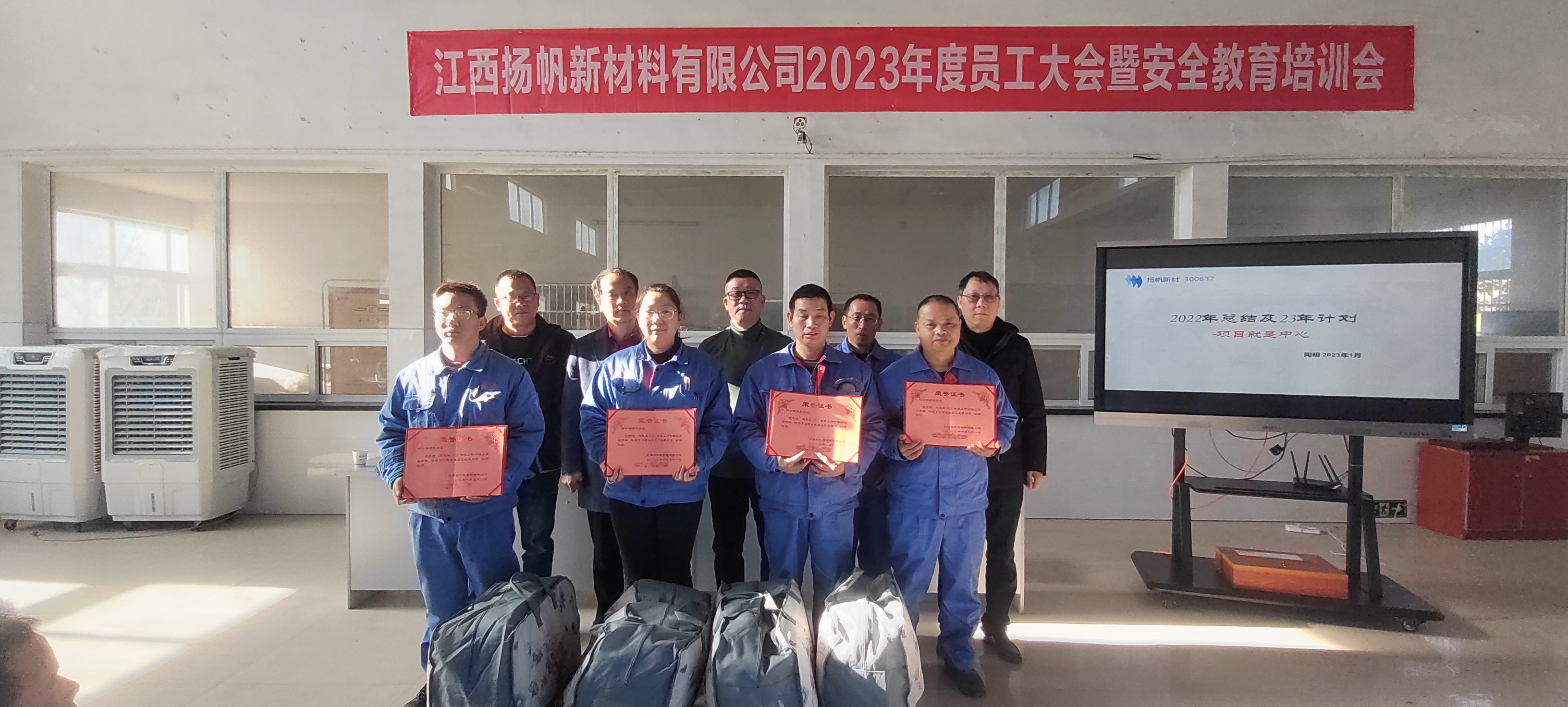 131日,揚帆新材上虞生產基地召開2023年度職工大會。